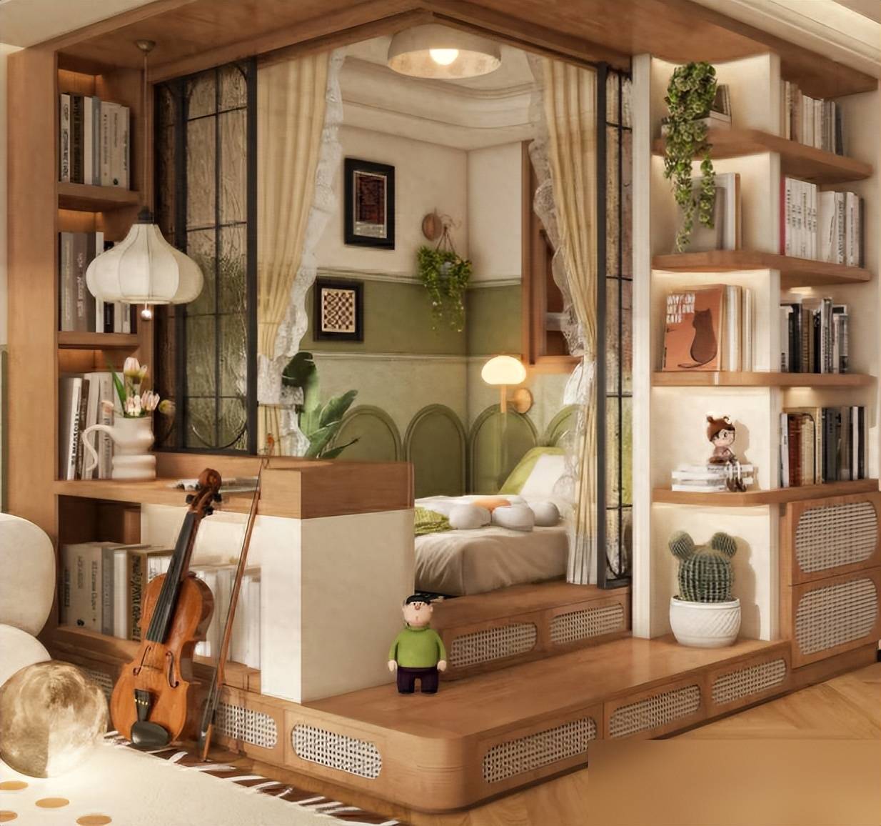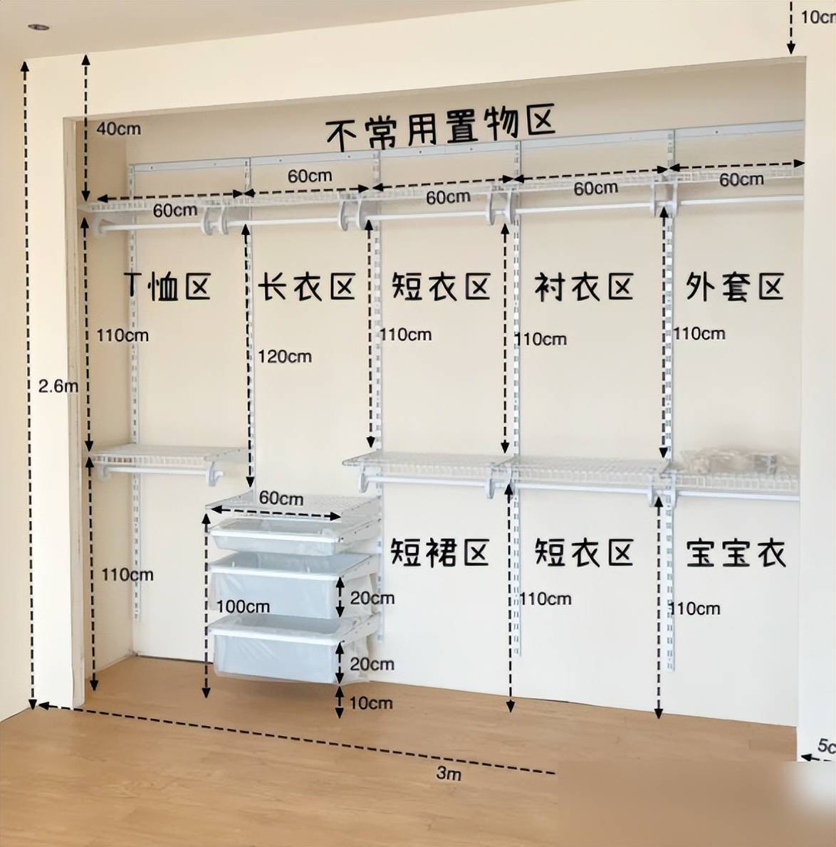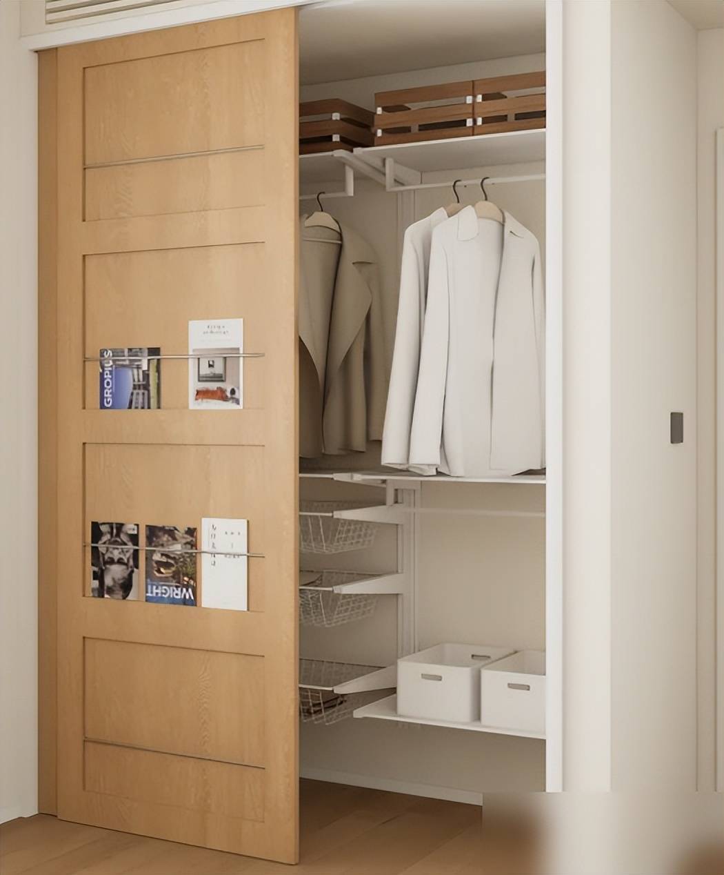 后来装了嵌入式壁橱,直接打通卧室的墙,里面做了分层架:冬天的厚被子能叠三层,老公的钓鱼竿能竖着装,连孩子的玩具收纳箱都有地方放。